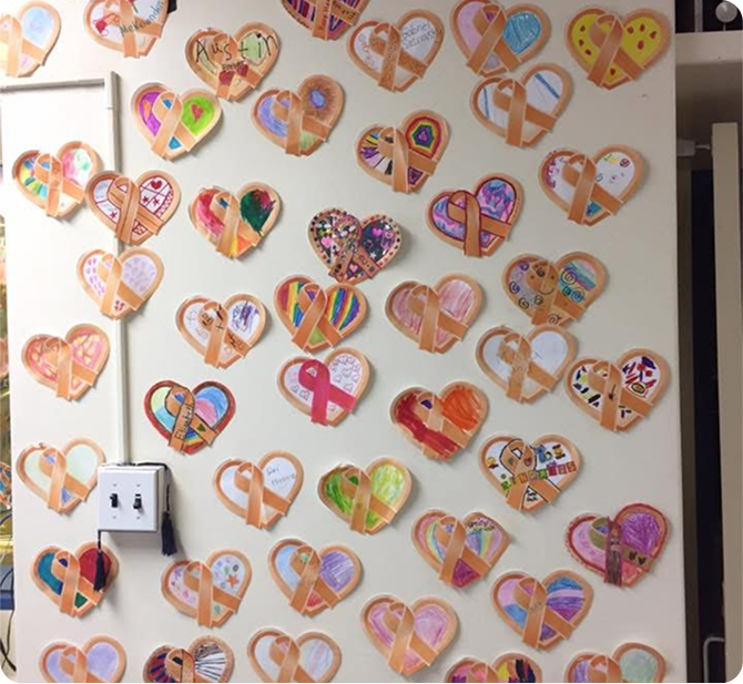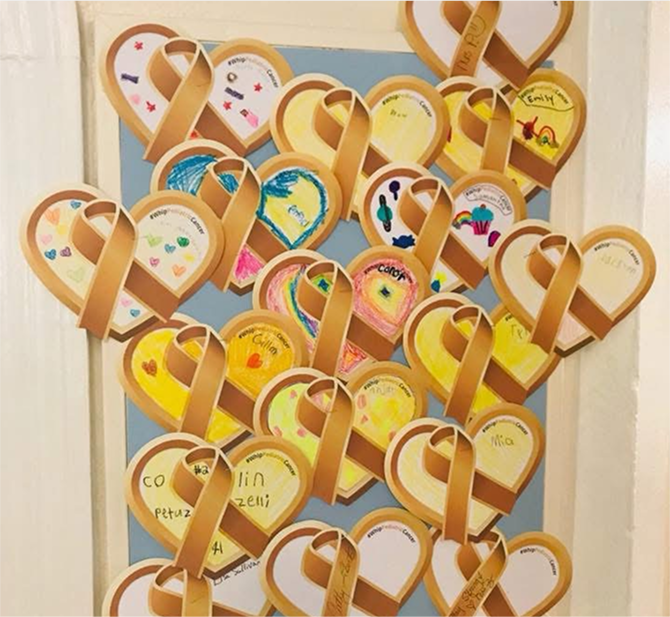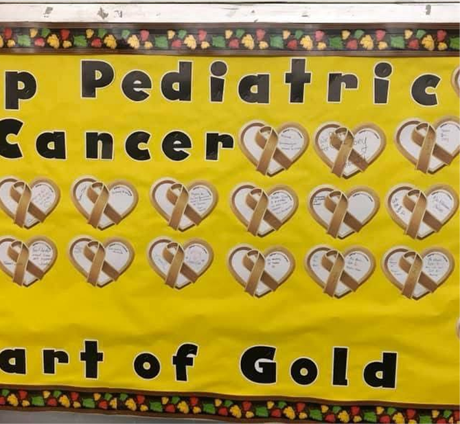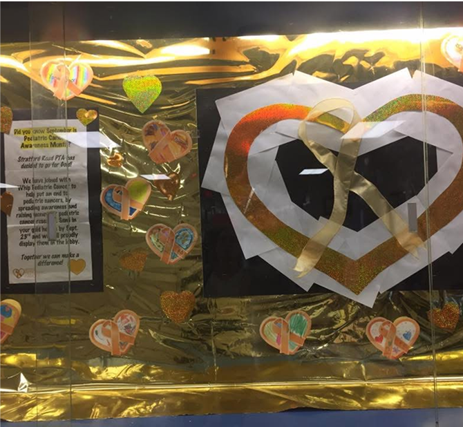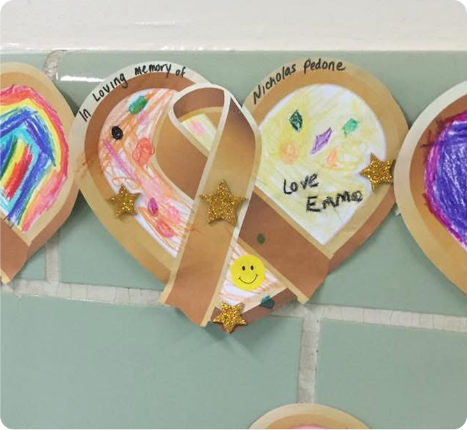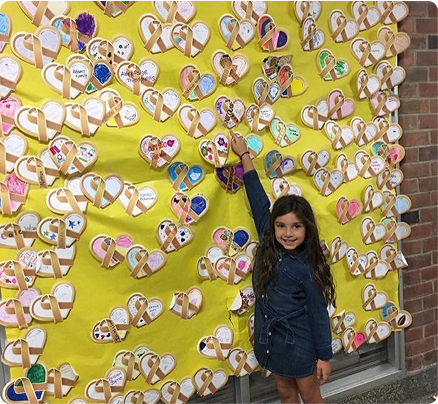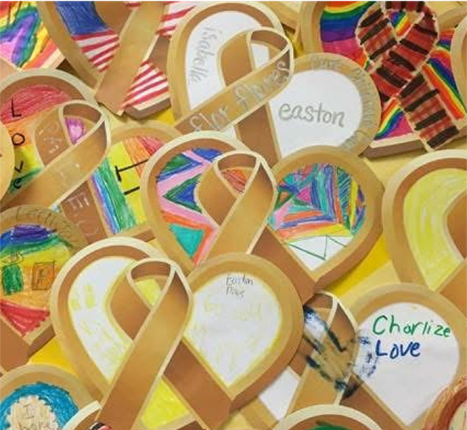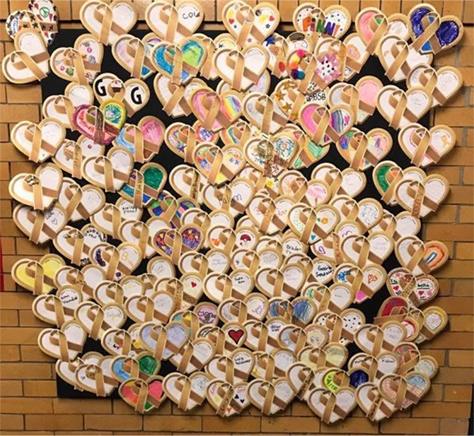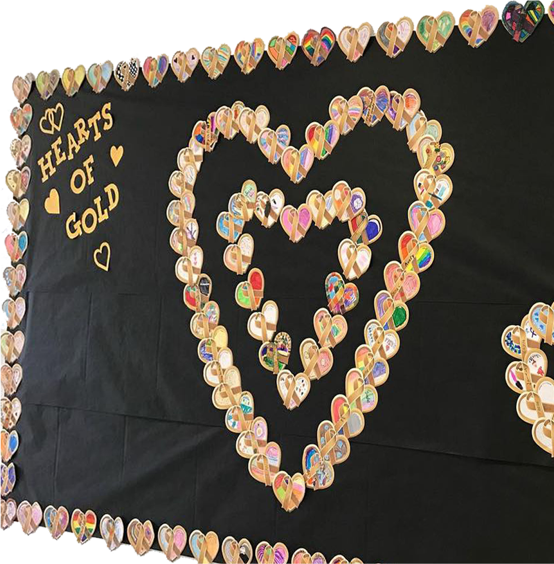 Each school or group distributes the GOLD hearts to students (or participants) to decorate and return with a suggested donation of just $2. This simple act teaches an important lesson, you don’t need hundreds of dollars to make a difference. Every dollar adds up.