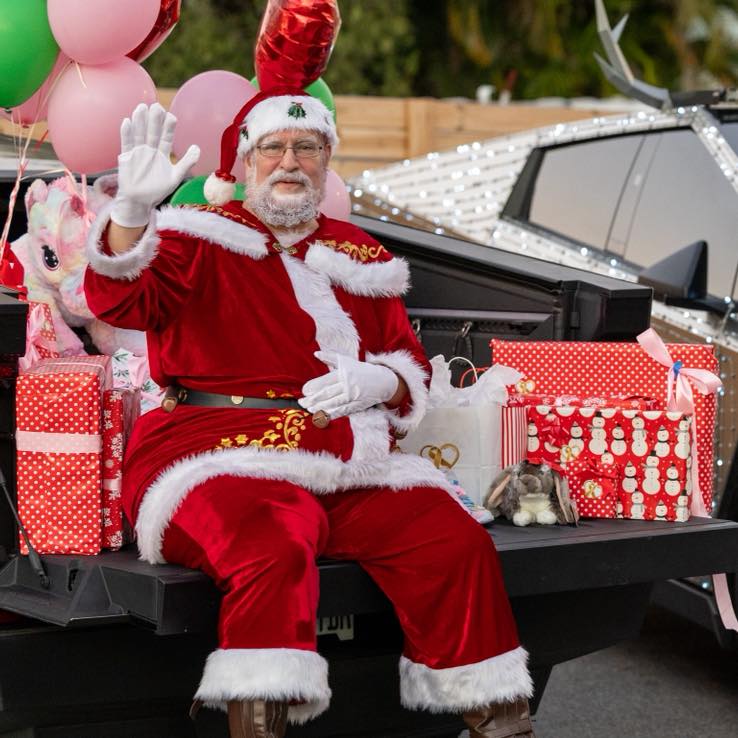 We surprised Grace at her home with a real-life Christmas winter wonderland. Santa arrived in a Cyber Sleigh overflowing with toys, each one donated from Grace’s Christmas wishlist by all of you. (Thank you!!!!!🎅🏻🎄) Every gift was wrapped in pink and red Christmas paper, surrounded by Princess Belle and Elsa. Cybertrucks lit up in Christmas lights filled the street, wishing Grace a Merry Christmas, while snow fell… even in Florida.